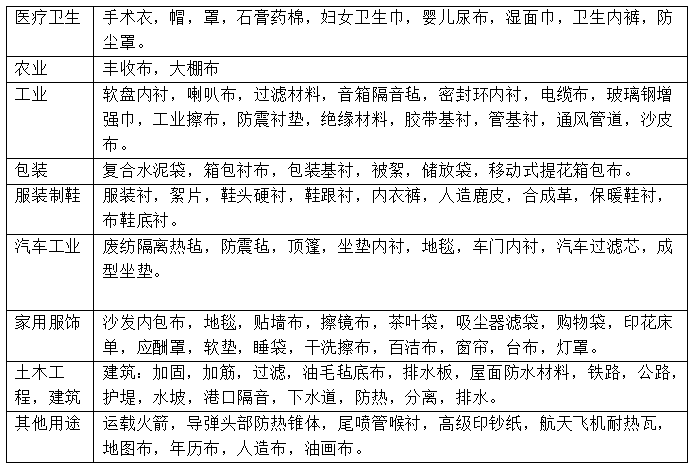 Main uses of non-woven fabrics: