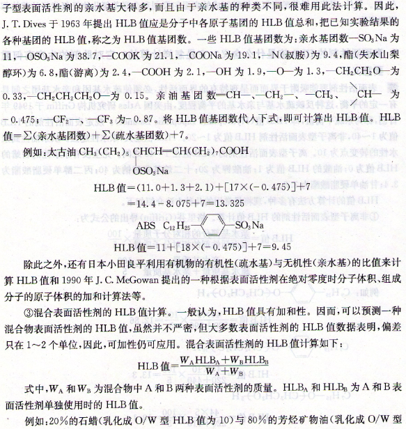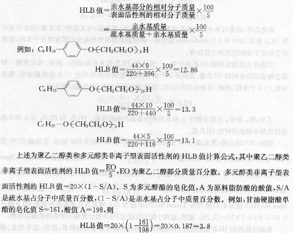 ① Calculation of HLB value of non-ionic surfactants. The formula derived by Griffin is: