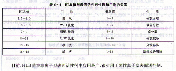 The application of the HLB value of surfactants is closely related to the properties of the surfactant. However, so far, the method of determining the HLB value is still relatively rough, and the surface activity cannot be determined solely by the HLB value. Therefore, the HLB value cannot be used as the main criterion for selecting surfactants, but the HLB value can help us generally understand the properties of surfactants and help with preliminary selection. When compounding additives, it can be considered that their HLB values should be basically the same. The relationship between HLB value and surfactant properties and uses is shown in Table 6-4.