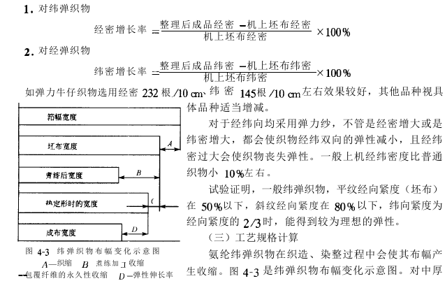 Therefore, design and calculation data such as warp length, effective width, reed width, warp density, and weft density should be determined after trial weaving. The change from machine density to cloth density can be expressed by warp density growth rate or weft density growth rate.