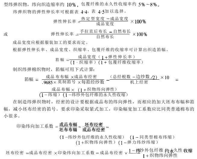 (3) The retraction of the spandex yarn in the relaxed tension state will cause the fabric to shrink significantly after the warp and weft are lowered into the machine and during the dyeing and finishing process. Therefore, during process calculation, the reed width and warping length should be increased according to the warp and weft elasticity of the finished product, and other data should be adjusted accordingly.