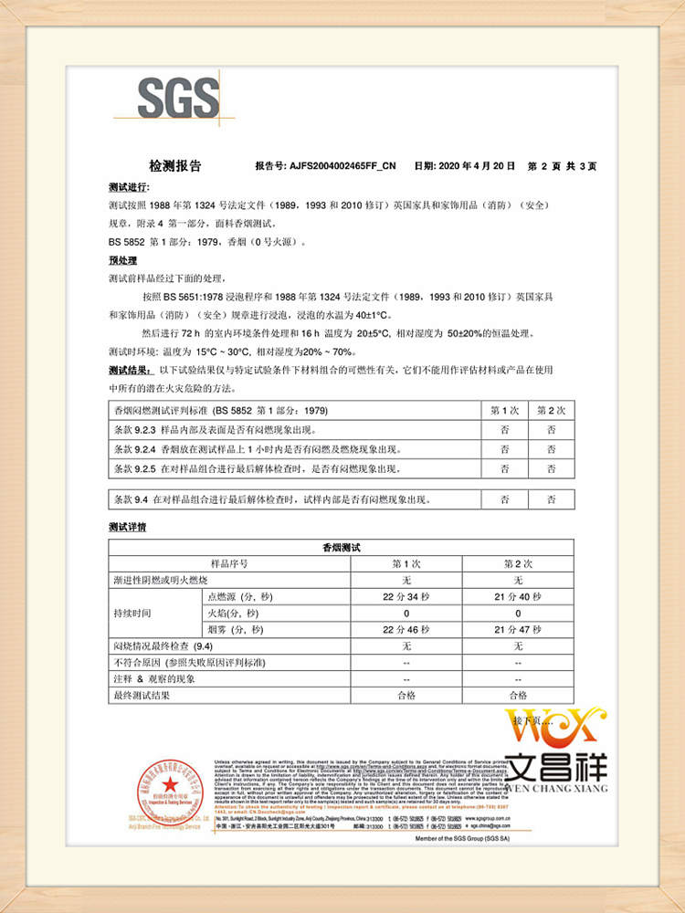 British Standard BS 5852 Flame Retardant Standard Report-Suzhou British Standard BS 5852 Flame Retardant Report </p